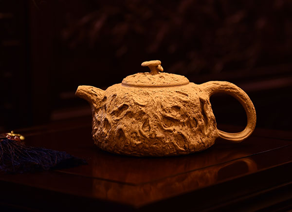 葛岳純父子皆擅長花貨的制作,其中家族代表作九龍至尊壺是由葛超美設計,其父親葛岳純制作完成,遠看壺型整體氣韻流暢,近看做工精美無暇,是父子合作的經典之作,現已注冊外觀專利和終身版權。后葛超美在其父親傳統技法的基礎上,吸收其藝術菁華,創造革新,制作出更為精致、富有立體感的九龍至尊壺,九龍盤壺戲珠,浮雕云騰致雨,精致于細發,大氣于天地,寓意天降祥瑞,國泰民安。